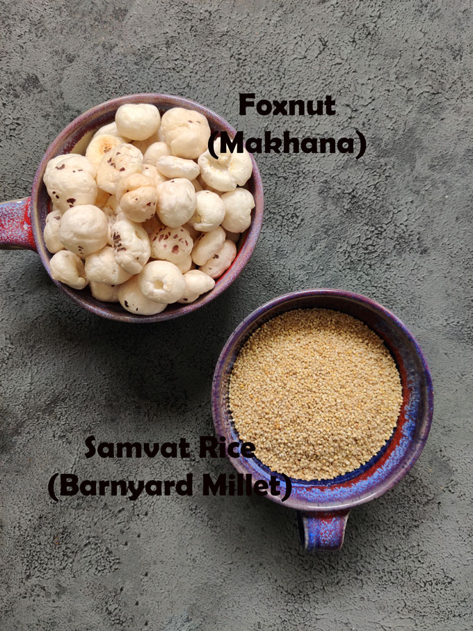 The two key ingredients of this kheer recipe are – Samvat Rice and Makhana.
