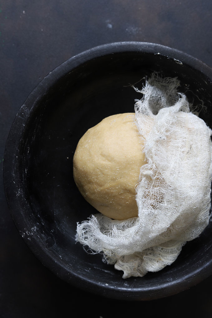 - Make sure not to use too much water. We need firm yet pliable dough. If the dough is on a stiff side do not worry by kneading you can make it soft.