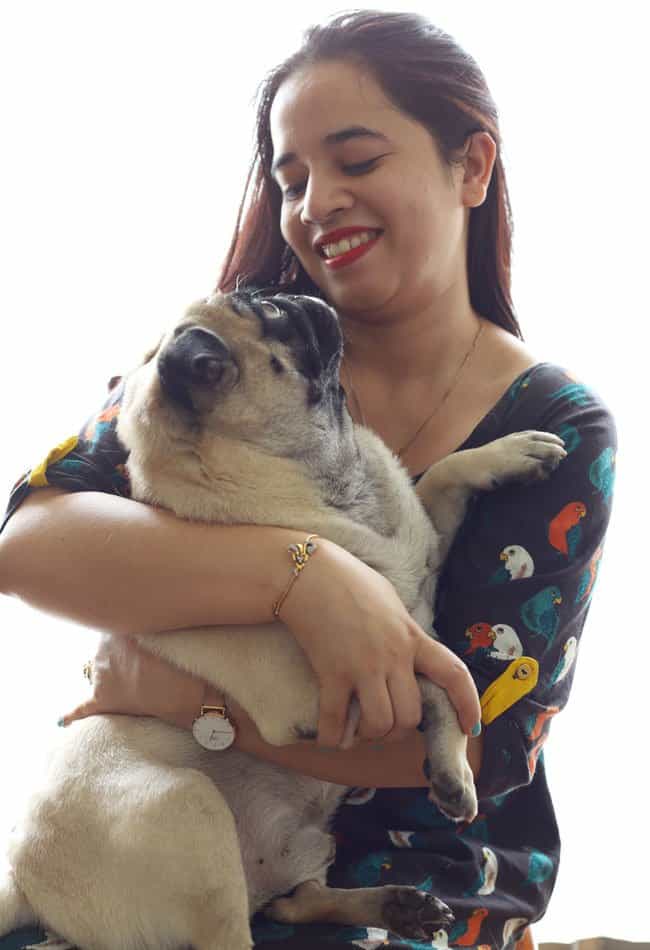 Momo is now 5 years old spoiled brat. Born in Bangalore to a German couple, he lived in Nainital, Gurgaon and now Chennai with us. Like most pugs, he is overtly human-friendly, stubborn, utterly funny and high on life. Emotionally supportive super dog. Always listening to all his mom’s rambling and complaints with a sympathetic lick and wag.