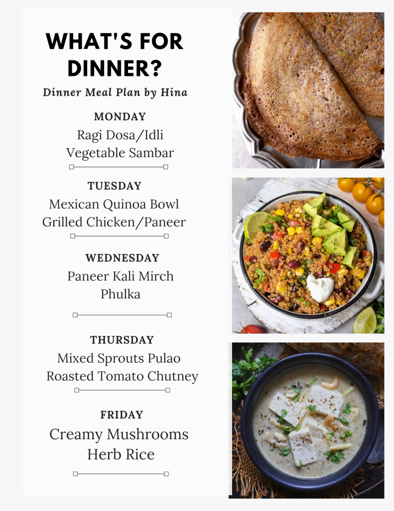 - Tuesday: Mexican Quinoa Bowl + Grilled Chicken/Paneer